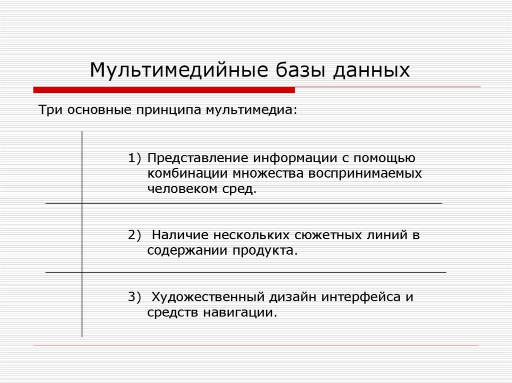 Мультимедийные базы данныхТри основные принципа мультимедиа: