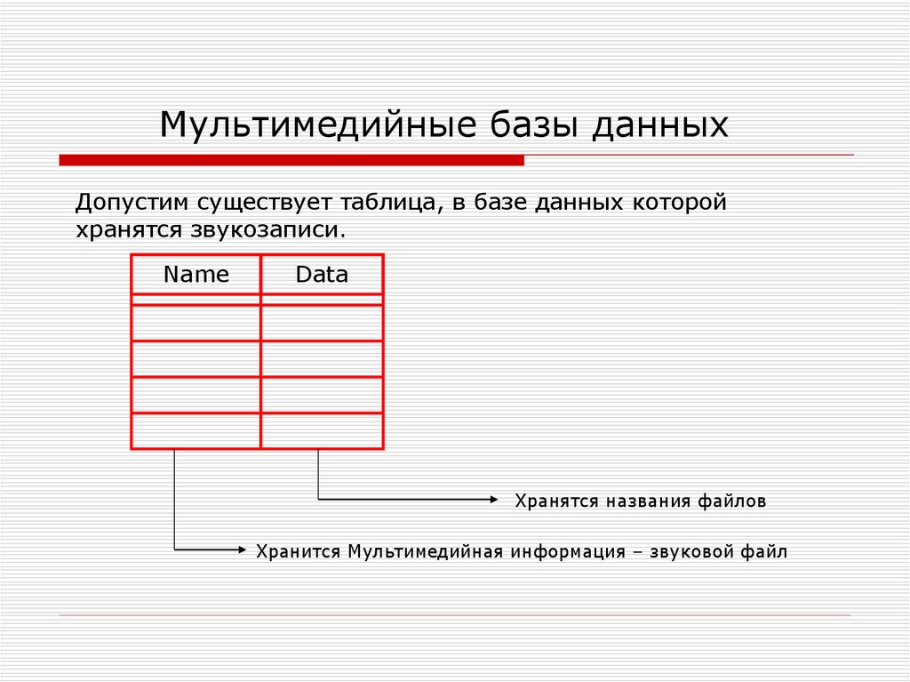 Мультимедийные базы данныхДопустим существует таблица, в базе данных которой