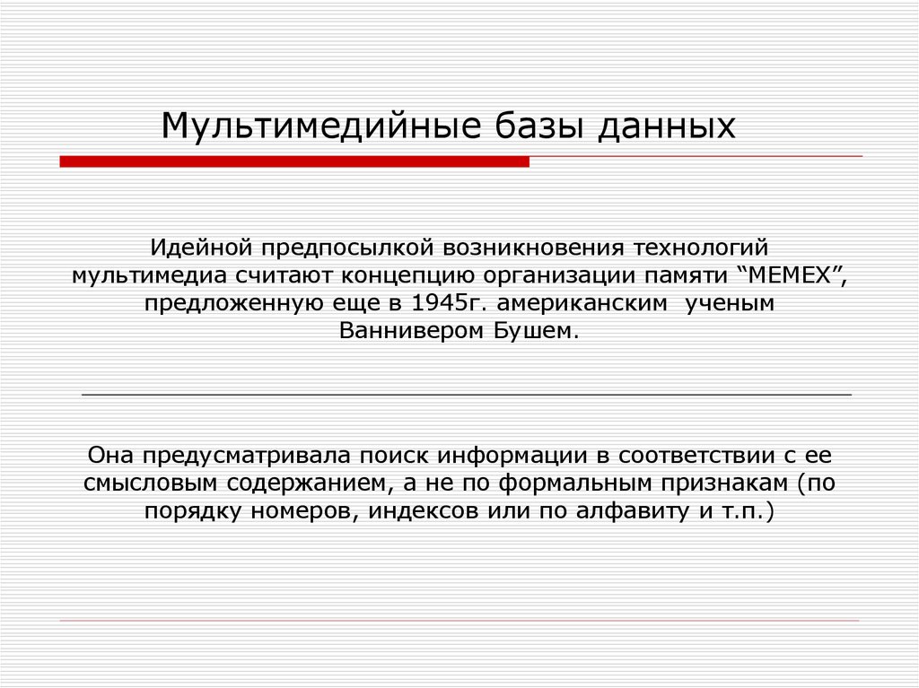 Мультимедийные базы данныхИдейной предпосылкой возникновения технологий