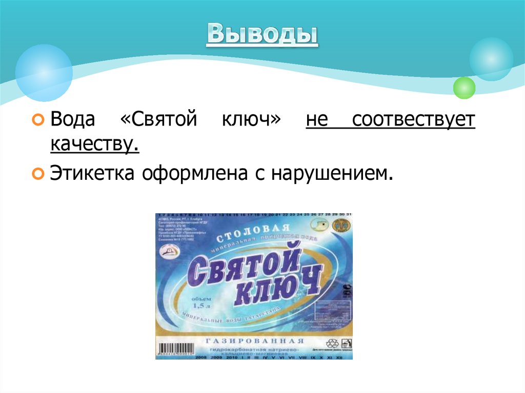 Вода«Святой ключ» не соотвествует