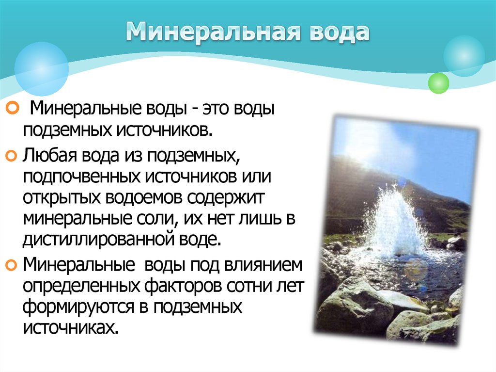 Минеральные воды - это водыподземных источников.