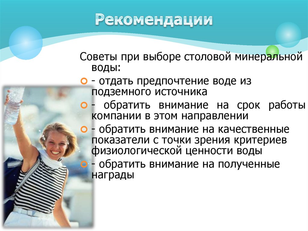 Советы при выборе столовой минеральнойводы:
