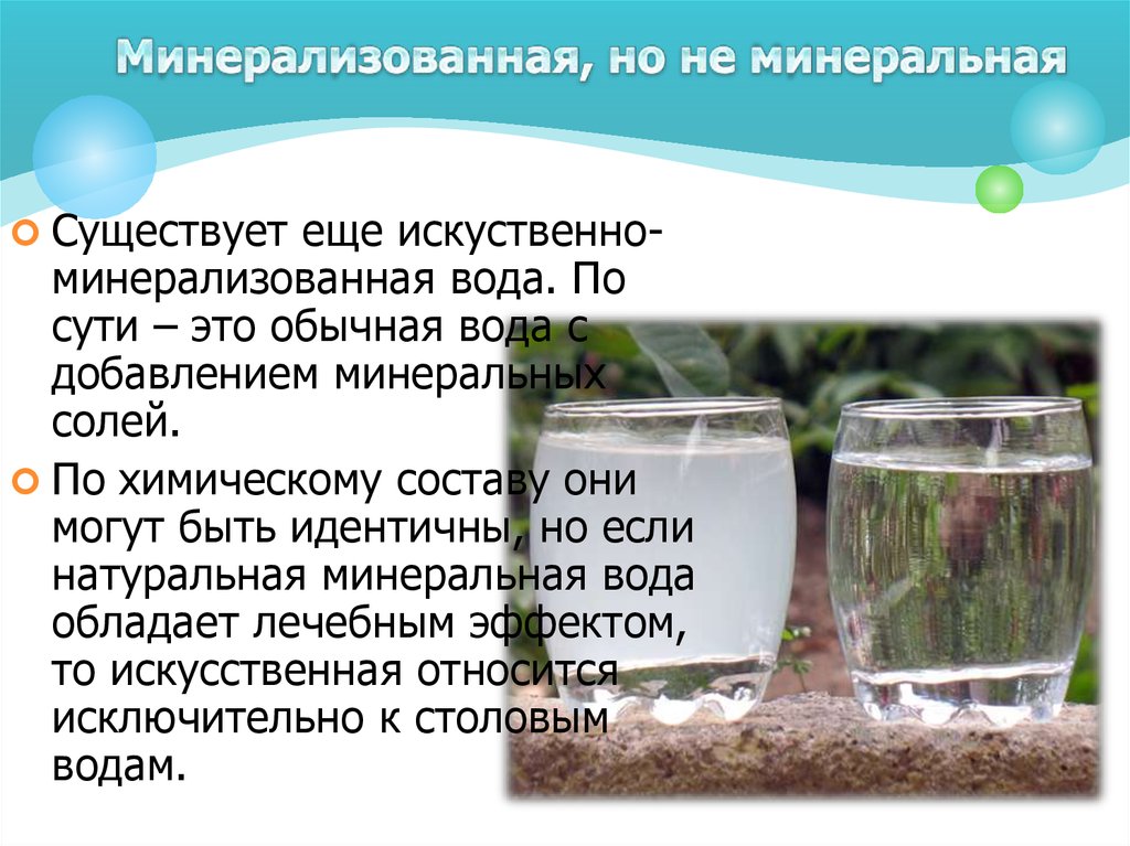 Существует еще искуственно-минерализованная вода. По