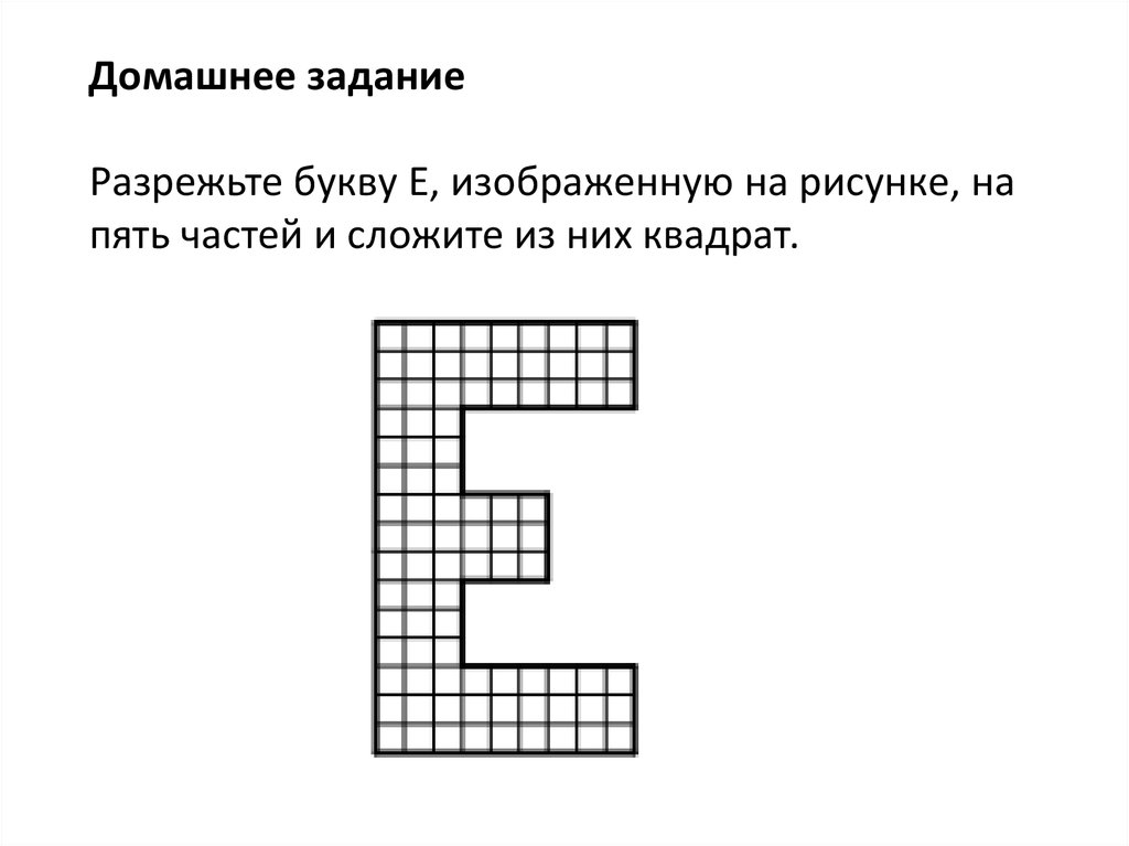 Домашнее заданиеРазрежьте букву Е, изображенную на рисунке, на