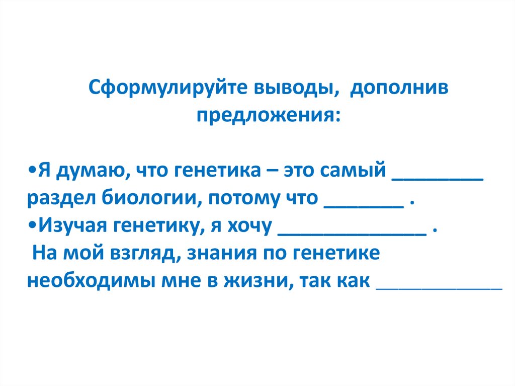 •Изучая генетику, я хочу _____________ .