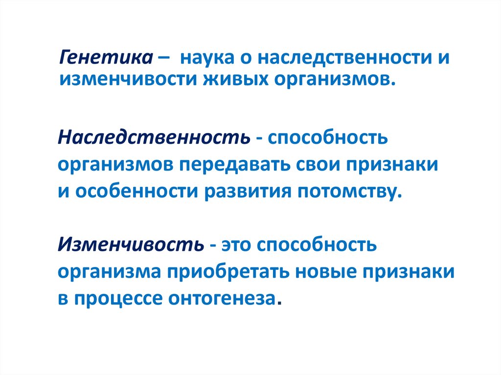 Генетика – наука о наследственности иизменчивости живых организмов.