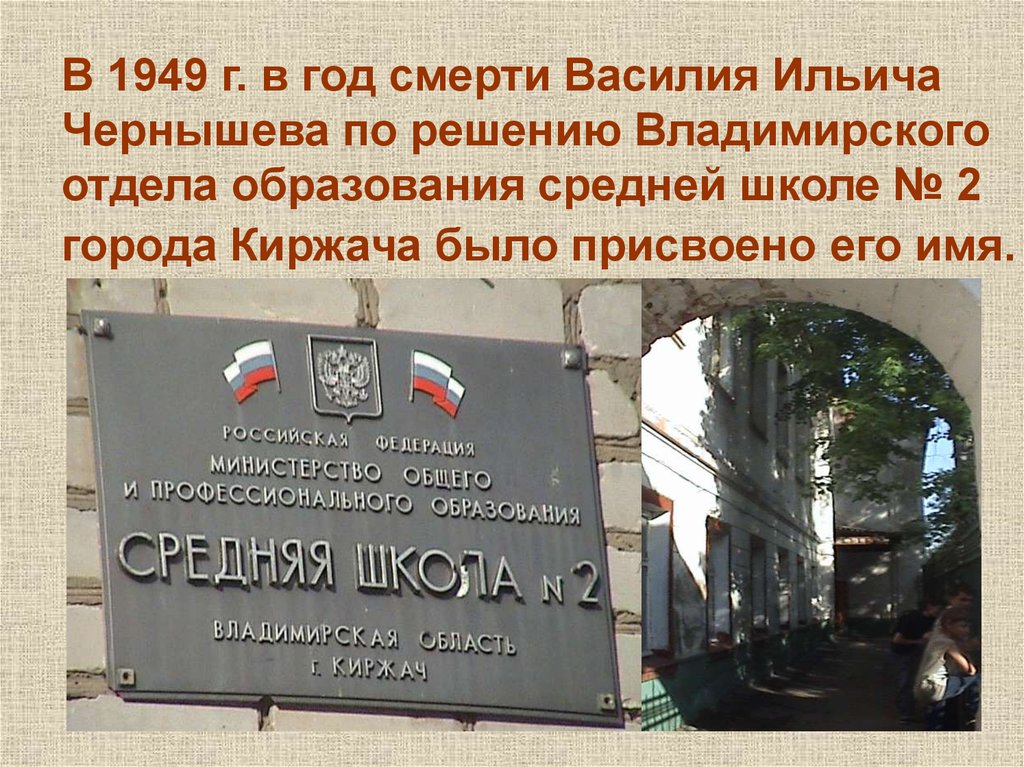 В 1949 г. в год смерти Василия ИльичаЧернышева по решению Владимирского