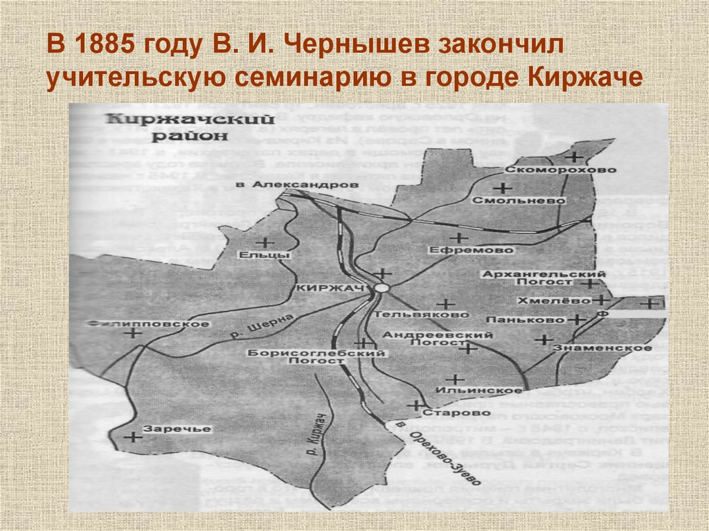 В 1885 году В. И. Чернышев закончилучительскую семинарию в городе Киржаче