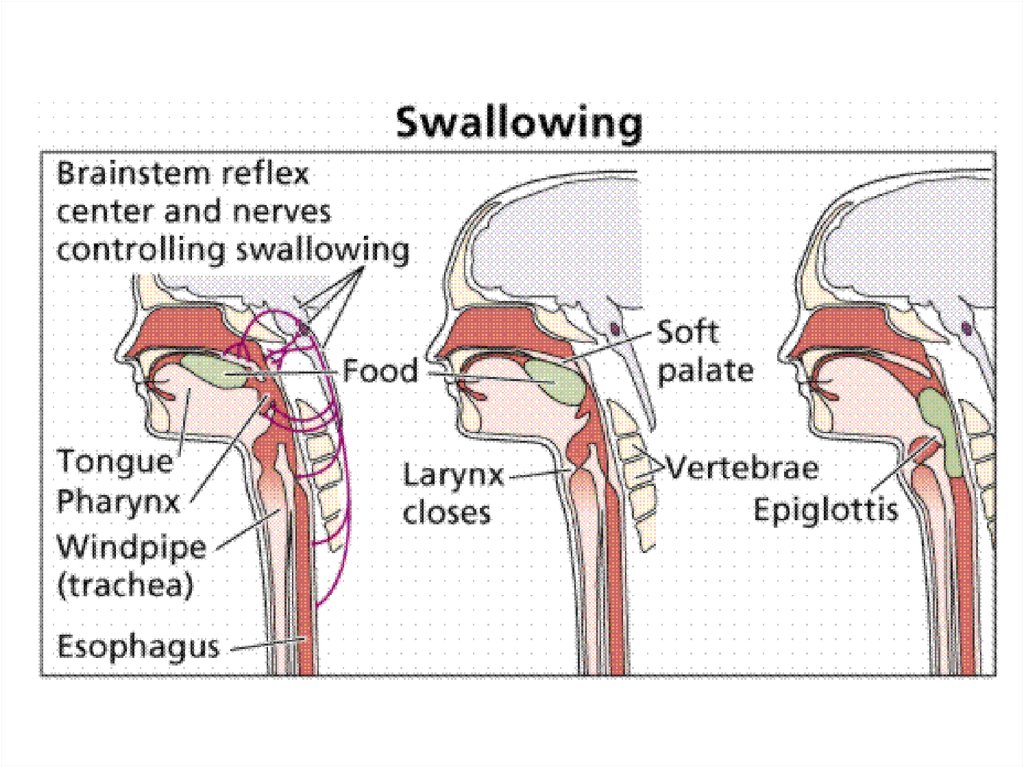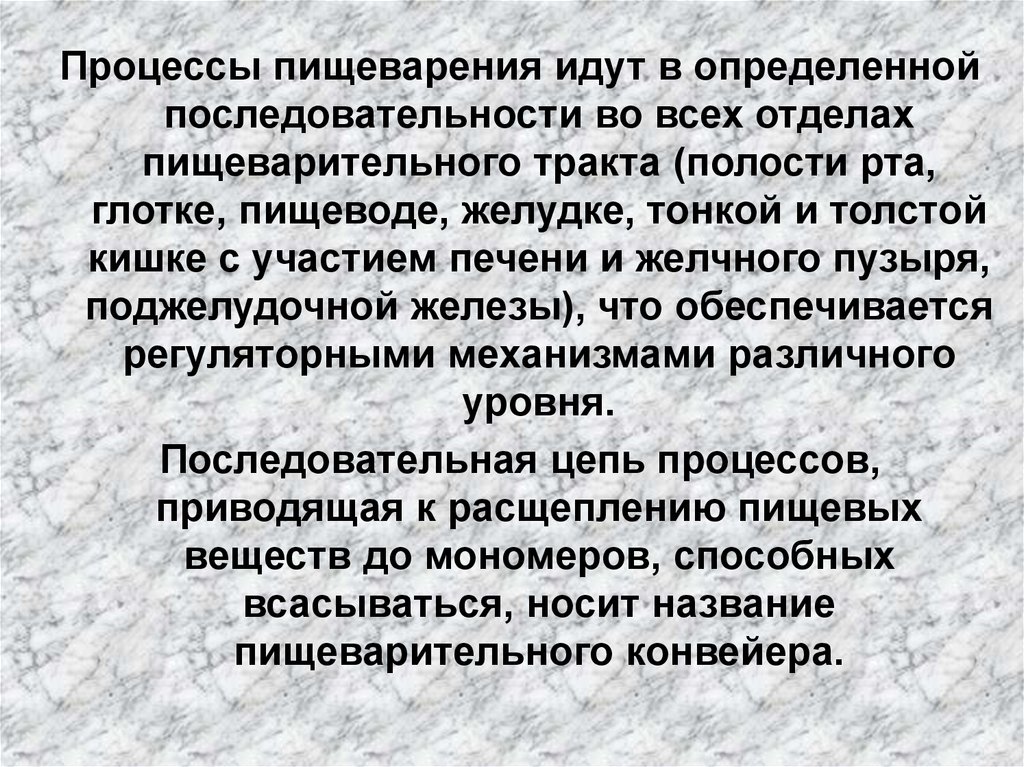 Процессы пищеварения идут в определеннойпоследовательности во всех отделах