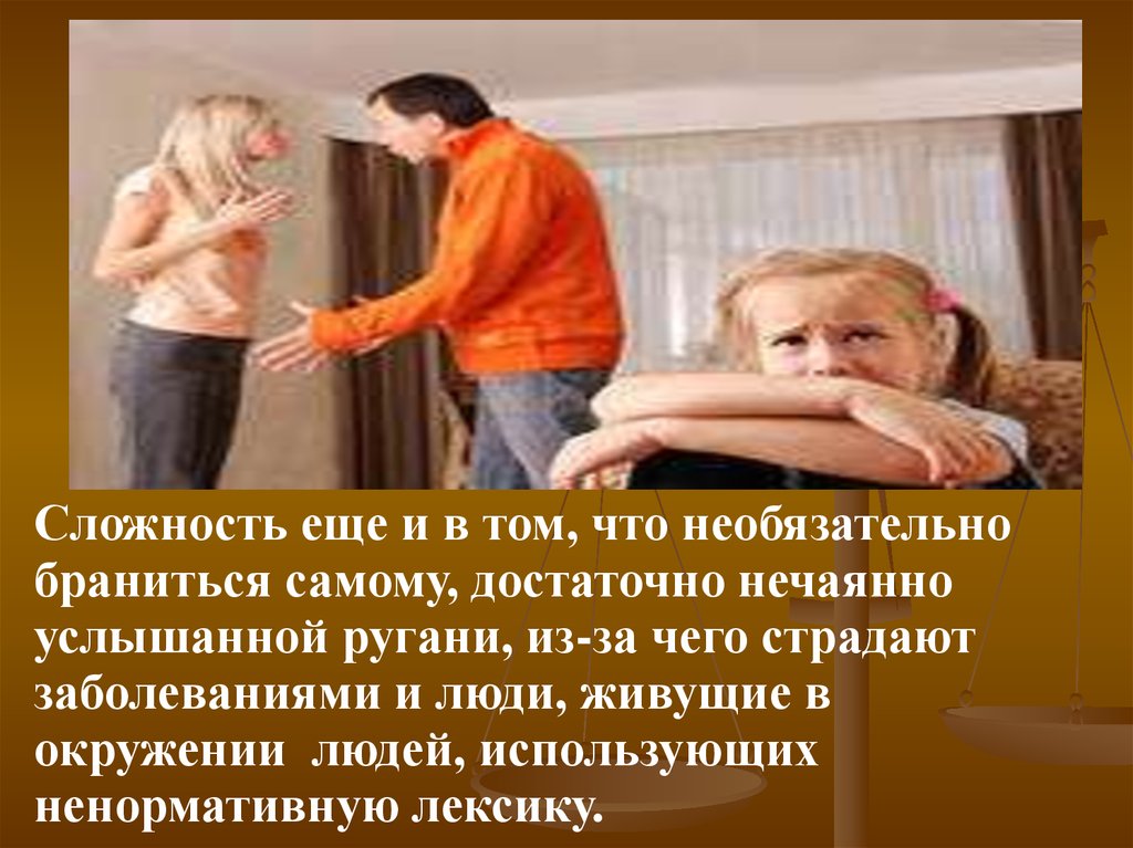 услышанной ругани, из-за чего страдают