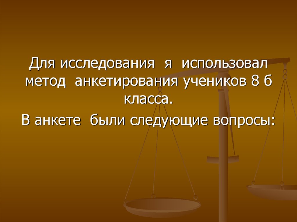 Для исследования я использовалметод анкетирования учеников 8 б