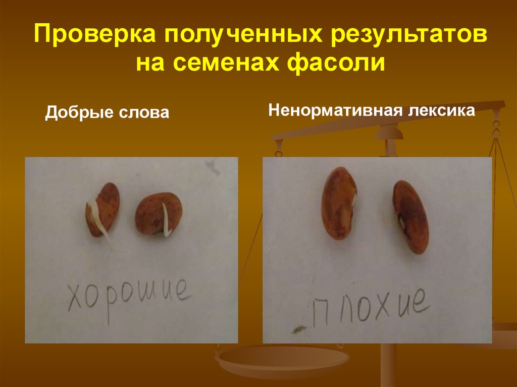 Проверка полученных результатовна семенах фасоли