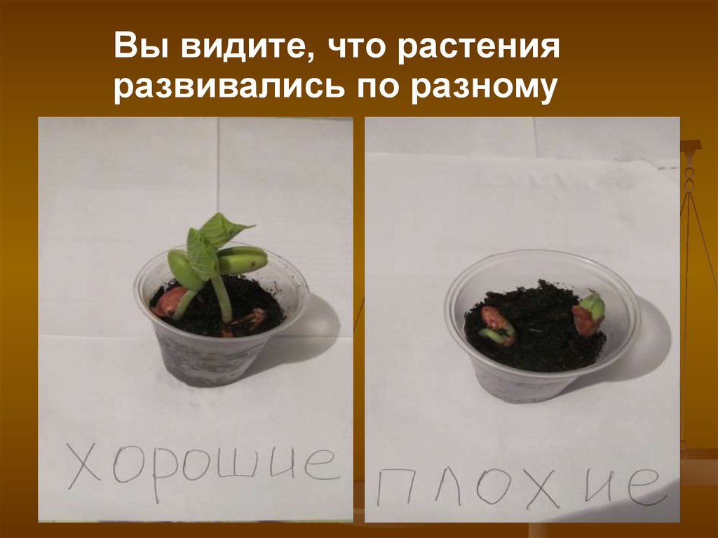 Вы видите, что растенияразвивались по разному