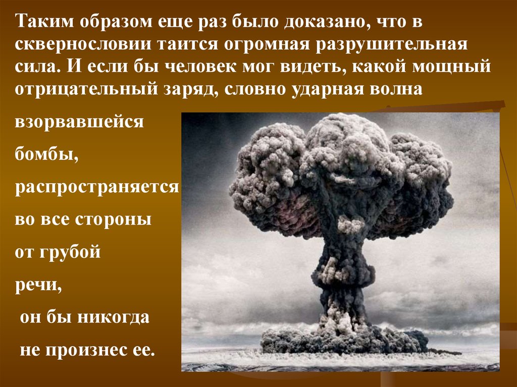 Таким образом еще раз было доказано, что всквернословии таится огромная разрушительная