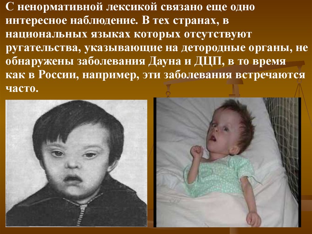 обнаружены заболевания Дауна и ДЦП, в то время