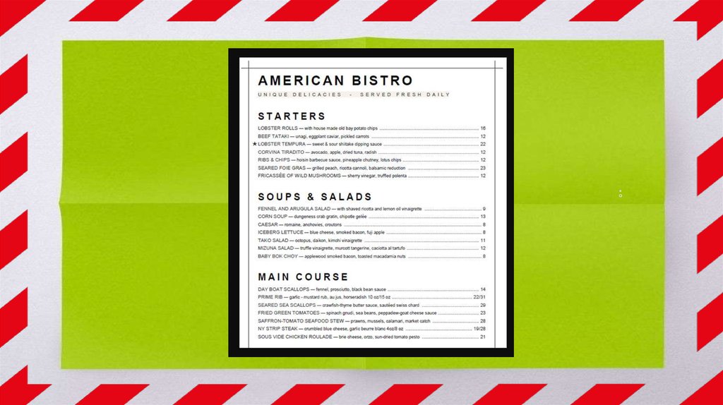 ADJECTIVEdescribing hotel food