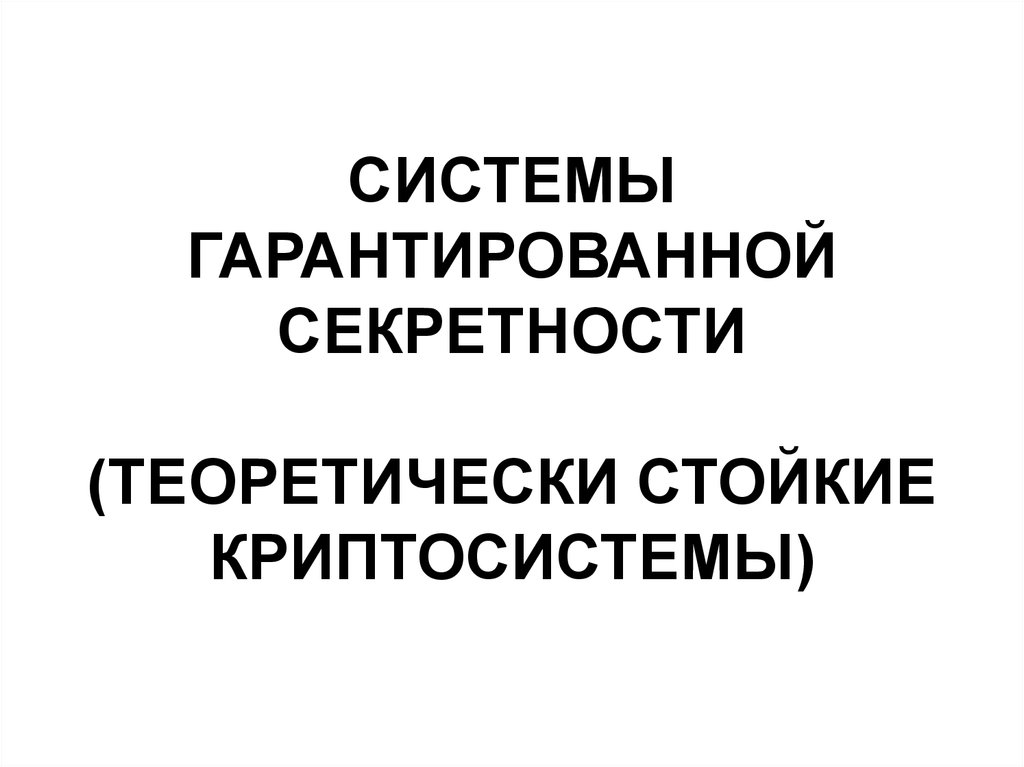 1. СИСТЕМЫ ГАРАНТИРОВАННОЙ СЕКРЕТНОСТИ (ТЕОРЕТИЧЕСКИ СТОЙКИЕ КРИПТОСИСТЕМЫ)