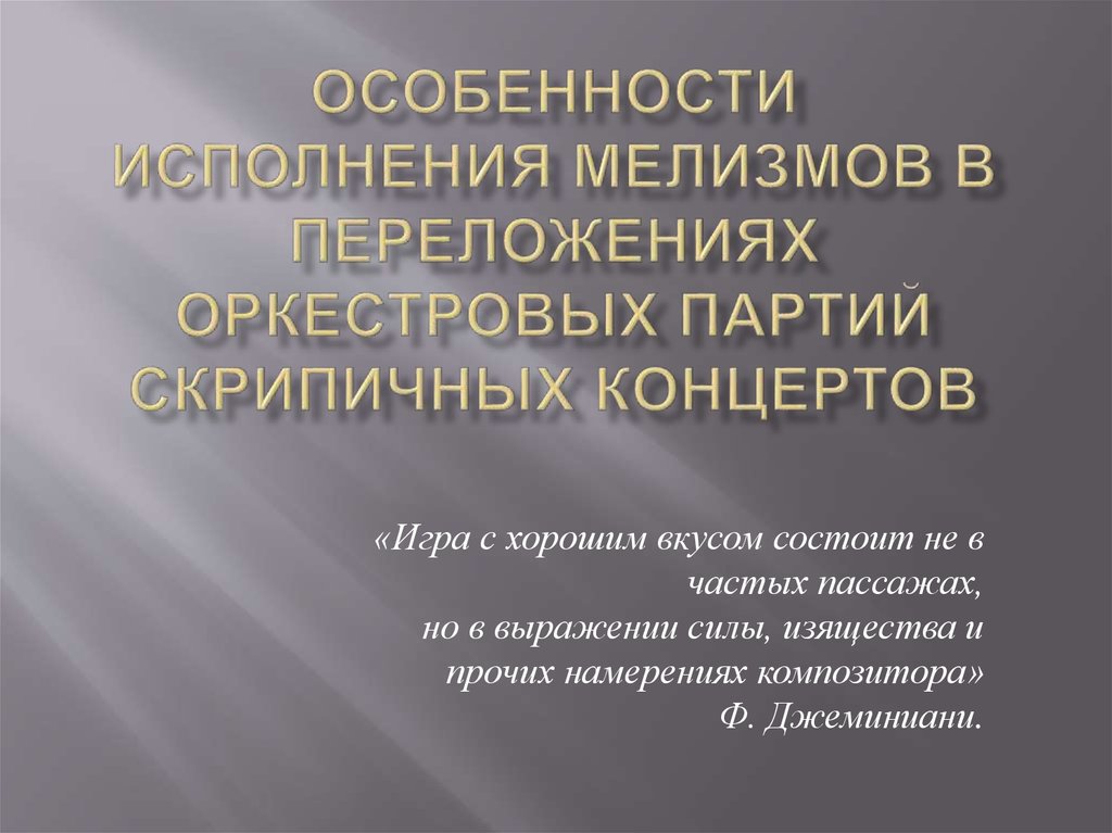 Особенности исполнения мелизмов в переложениях оркестровых партий скрипичных концертов