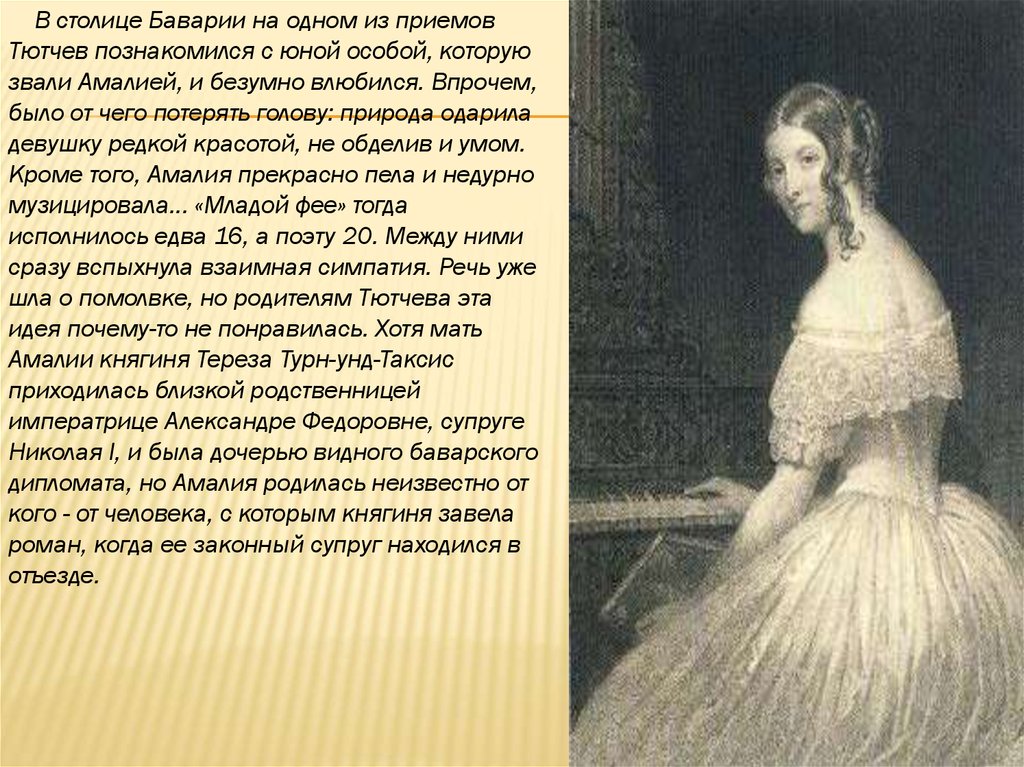 В столице Баварии на одном из приемовТютчев познакомился с юной особой, которую