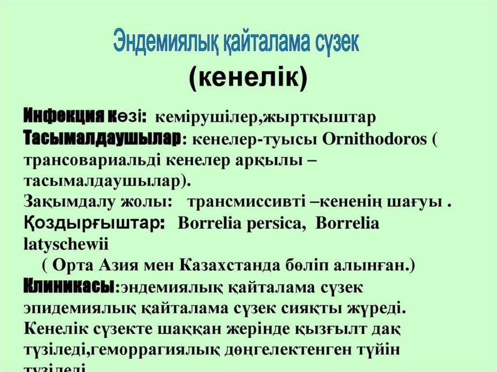 13. Лайм ауруы-табиғи-ошақты инфекция. Көбінесе иксод тұқымдас кенелер тарайтын орманды жерлерде тарайды. Ресейде кең жайылған