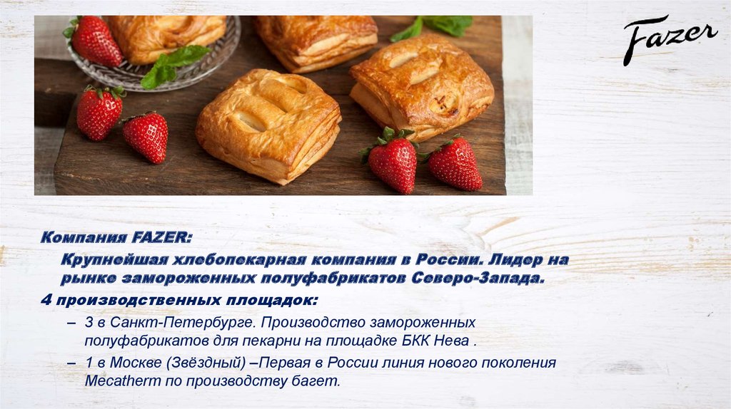 Компания FAZER:Крупнейшая хлебопекарная компания в России. Лидер на
