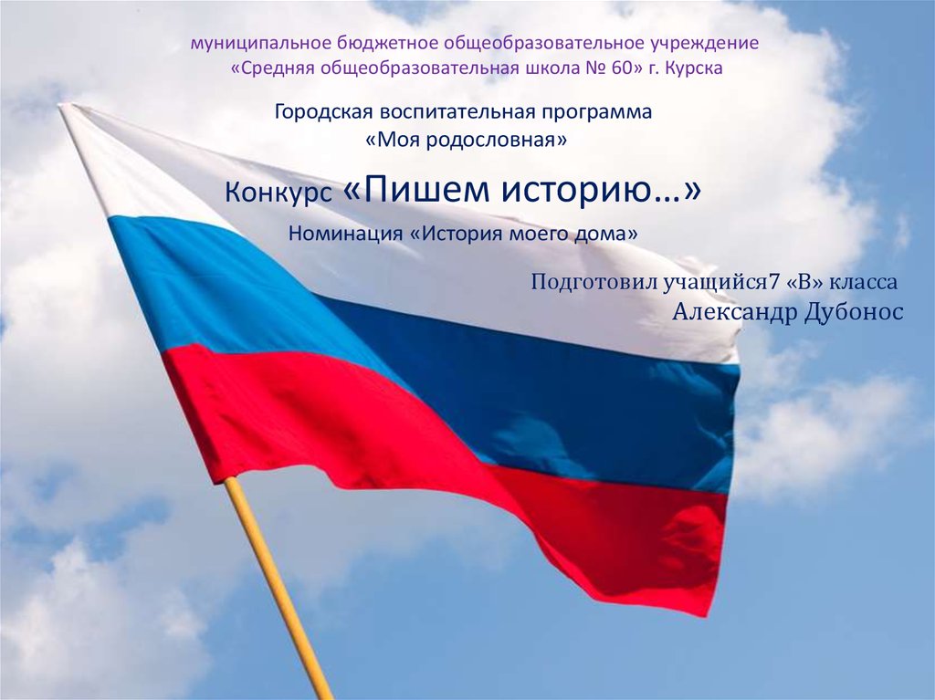 Городская воспитательная программа «Моя родословная». Конкурс «Пишем историю…» Номинация «История моего дома»