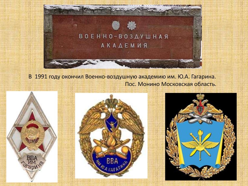 В 1991 году окончил Военно-воздушную академию им. Ю.А. Гагарина.Пос. Монино Московская область.