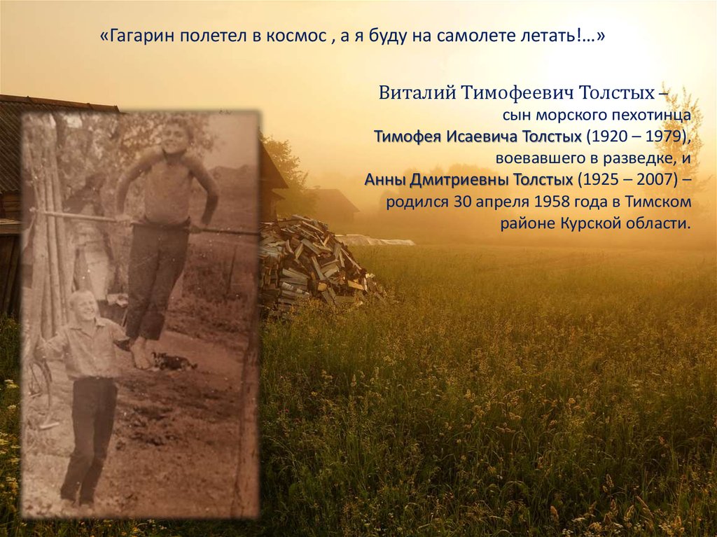 «Гагарин полетел в космос , а я буду на самолете летать!…»Виталий Тимофеевич Толстых –