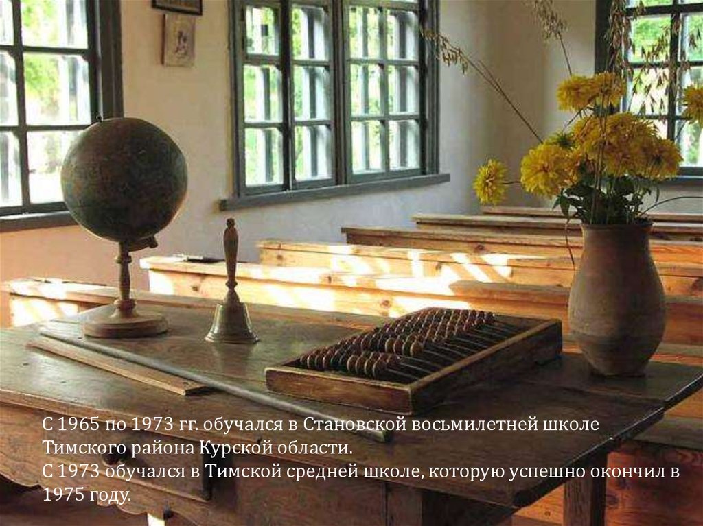 С 1965 по 1973 гг. обучался в Становской восьмилетней школеТимского района Курской области.