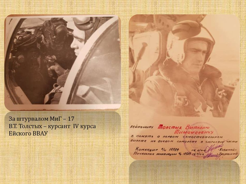 За штурвалом МиГ – 17В.Т. Толстых – курсант IV курса