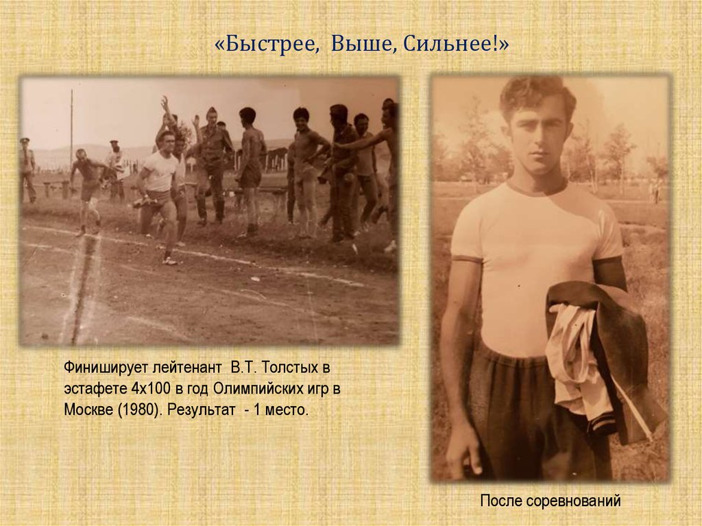 «Быстрее, Выше, Сильнее!»Финиширует лейтенант В.Т. Толстых в