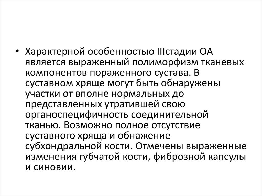 • Характерной особенностью IIIстадии ОАявляется выраженный полиморфизм тканевых
