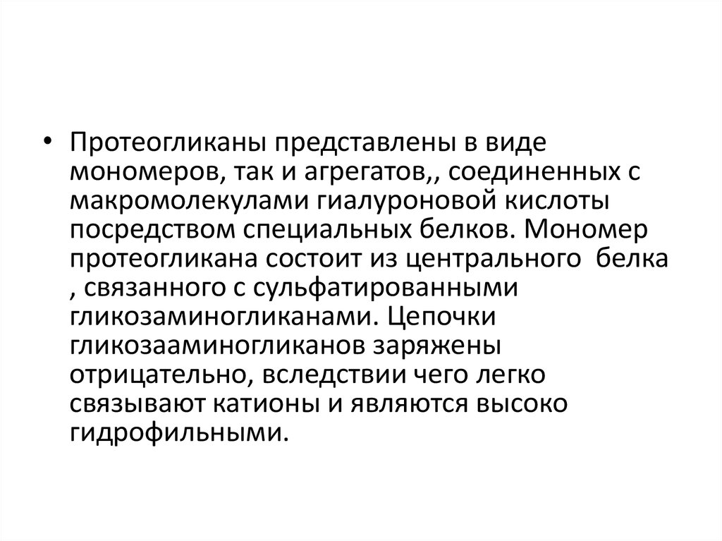 • Протеогликаны представлены в видемономеров, так и агрегатов,, соединенных с