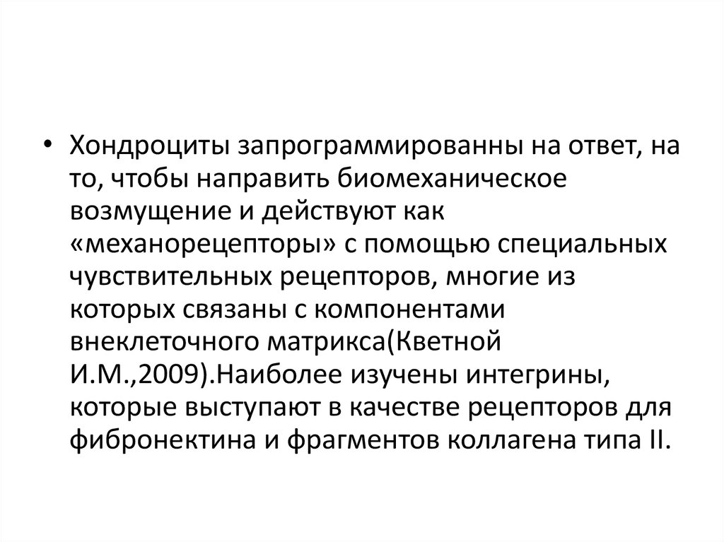 • Хондроциты запрограммированны на ответ, нато, чтобы направить биомеханическое