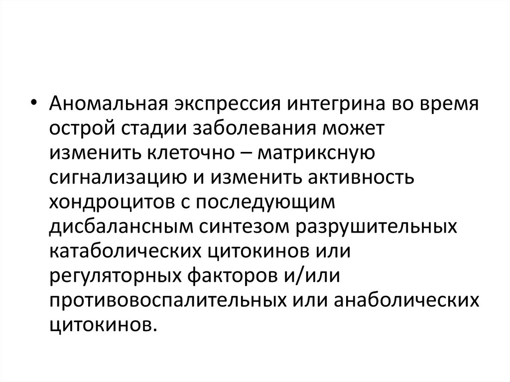 • Аномальная экспрессия интегрина во времяострой стадии заболевания может