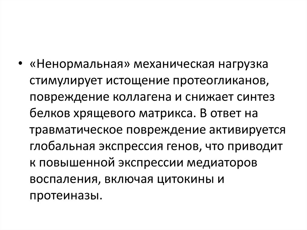 • «Ненормальная» механическая нагрузкастимулирует истощение протеогликанов,