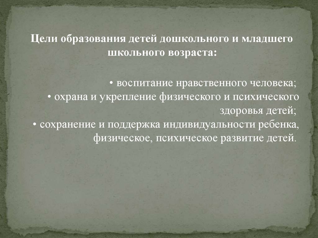 Цели образования детей дошкольного и младшегошкольного возраста:
