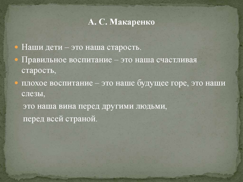 А. С. МакаренкоНаши дети – это наша старость.
