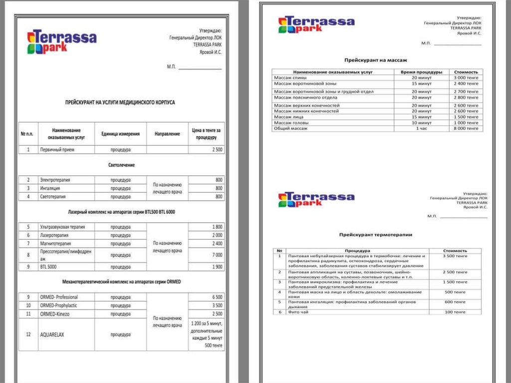 пакетом "Профилактический" - 15000 тг/сут на 1 человека.