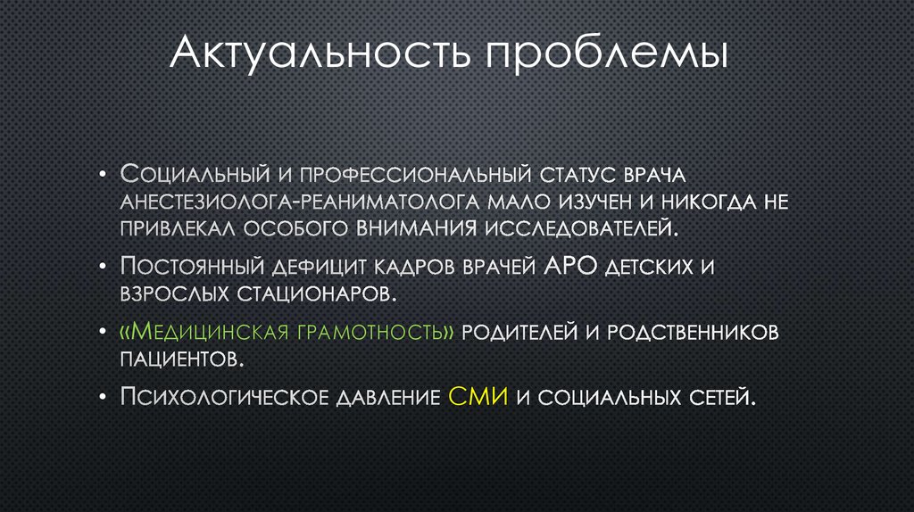 Социально-профессиональный статус анестезиолога-реаниматолога детских и взрослых отделений