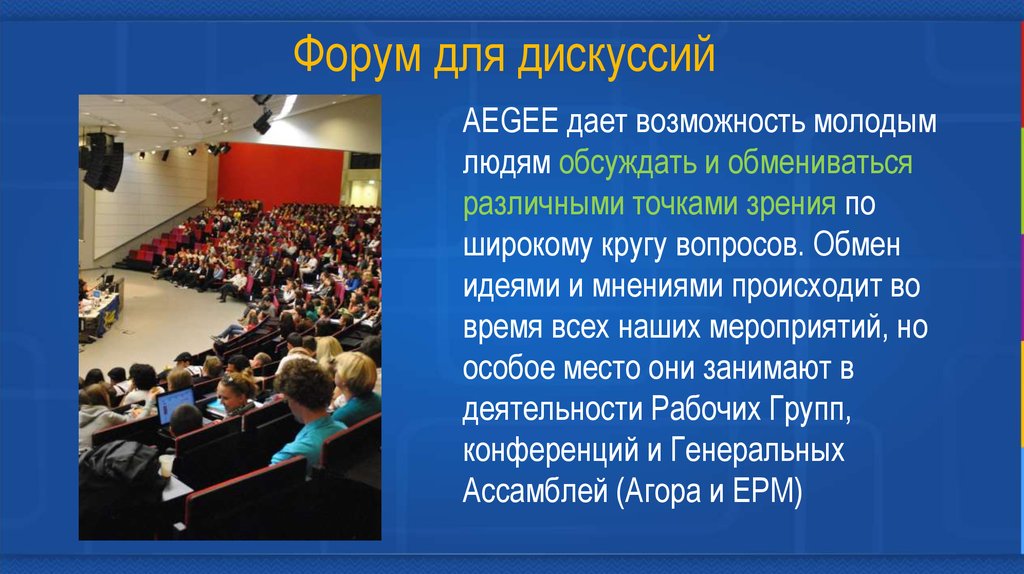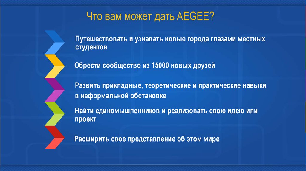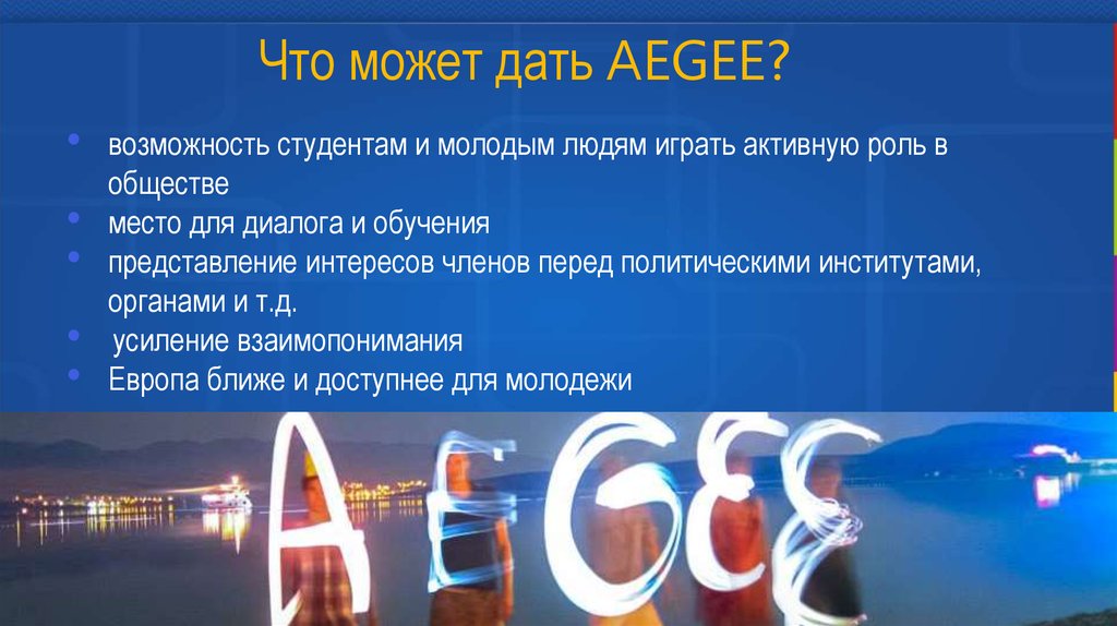 Что может дать AEGEE?возможность студентам и молодым людям играть активную роль в