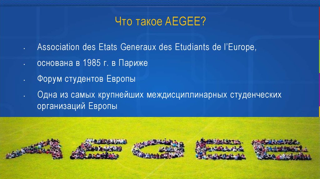 Что такое AEGEE?Association des Etats Generaux des Etudiants de l’Europe,