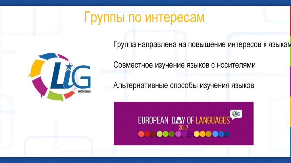 Группы по интересамГруппа направлена на повышение интересов к языкам