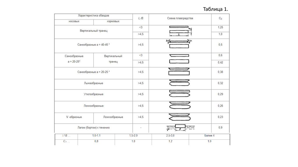 нагрузок, учитываемые при расчете якорных закреплений, приведены в таблице 1.