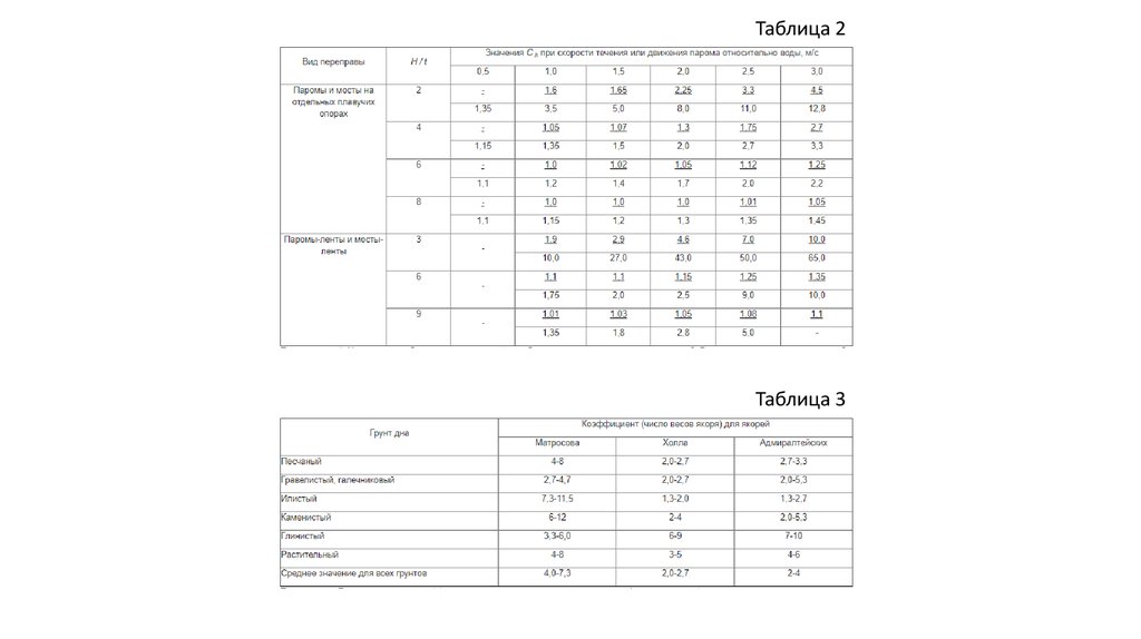 Примечание: Интенсивность давления ветра при расчете якорей по данной таблице не принимают