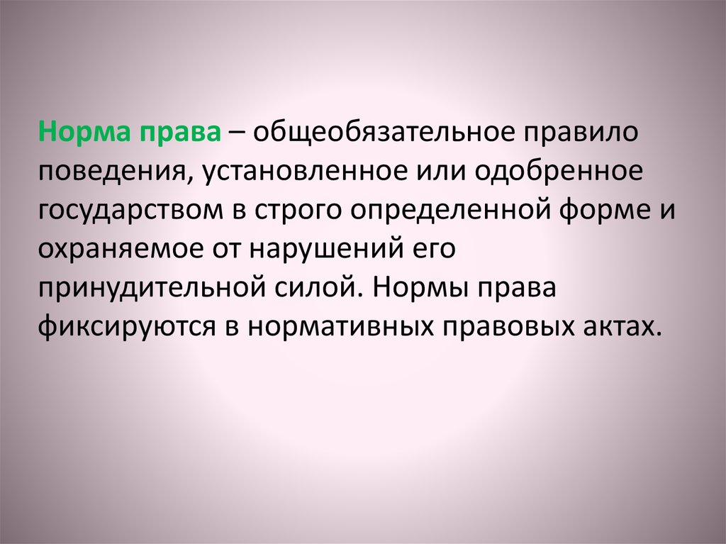 Норма права – общеобязательное правилоповедения, установленное или одобренное