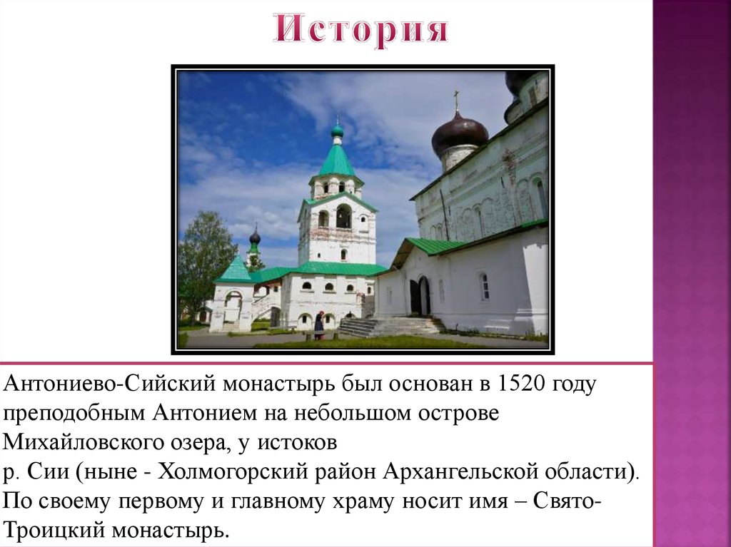Антониево-Сийский монастырь был основан в 1520 годупреподобным Антонием на небольшом острове
