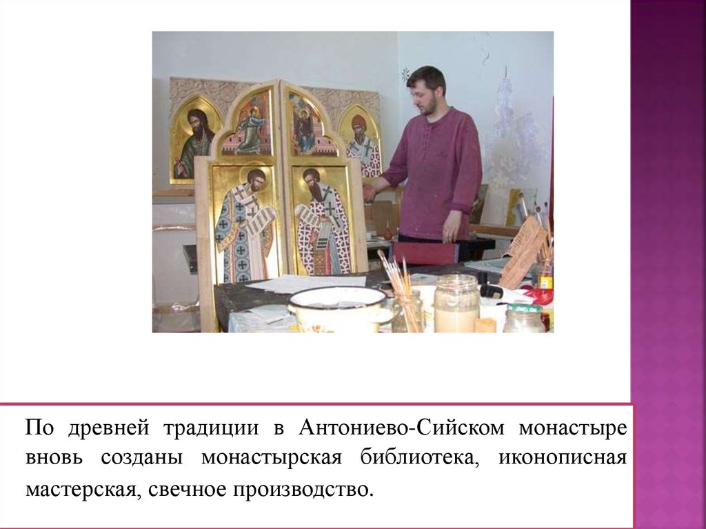 По древней традиции в Антониево-Сийском монастыревновь созданы монастырская библиотека, иконописная
