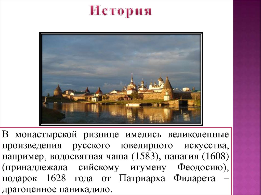 В монастырской ризнице имелись великолепныепроизведения русского ювелирного искусства,