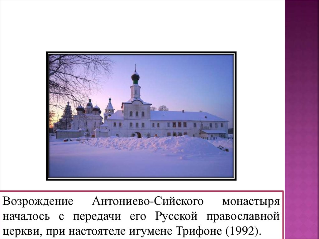 Возрождение Антониево-Сийского монастыряначалось с передачи его Русской православной